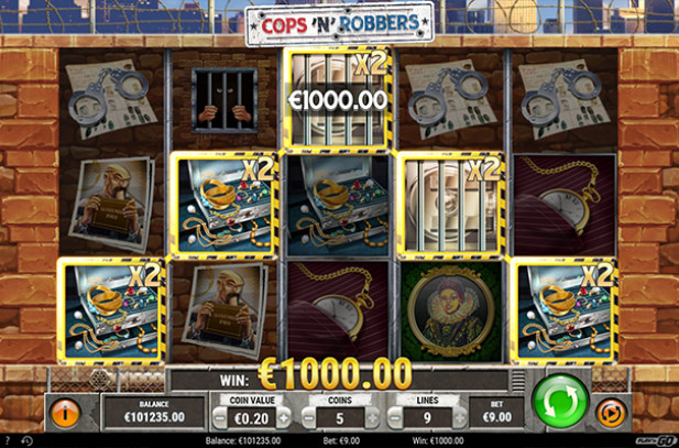 Got sticky fingers? Sacks of cash are up for grabs in Cops'n'Robbers, a felonious 5-reel slot from Play’n GO. Plan your big heist on up to 9 lines by lining up precious diamonds, priceless works of art and other hot merchandise. The bank vault symbol is wild to help you unlock even more winning combinations worth double the normal amount. You can further multiply your share of the loot in the Gamble round to win up to 2...
