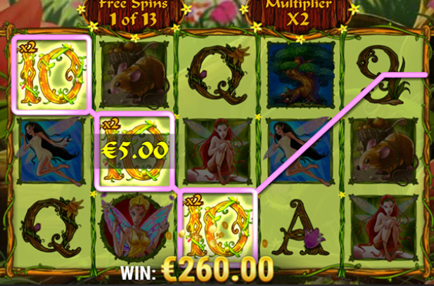 The fairies delight in this fanciful 5-reel, 15-line slot. The enchanted tree is wild. It substitutes for most other symbols and magically grows to cover all three positions on reel 3 when it can help to comprise winning combinations.