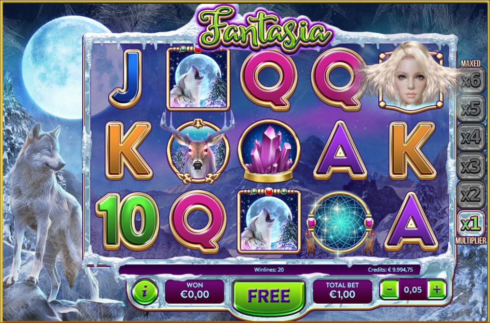Plunge into a dream world where your fantasies become reality! Fantasia is full of fun and mystery. When the Winter Fairy is around she’s a wild symbol who hands out a re-spin. There are multipliers too, up to six times, plus free games!