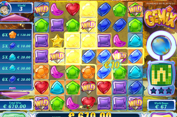 Round up precious gemstones for a brilliant payout in GEMiX, a highly polished slot game charged with creative energy from Play’n GO. Radiant gemstones in all the colours of the rainbow drop from above to fill the game grid. Win a prize for each cluster of 5 or more identical gems: The more gems in a cluster, the greater your prize! Jewels in winning clusters burst away to be replaced by new gems, giving you chance afte...