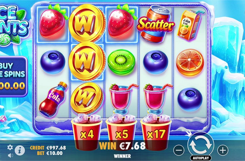 Discover chills and thrills in Ice Mints by Pragmatic Play. Five frosty reels spin above three multiplier cups beneath reels 2, 3 and 4—holding up to 20× on reels two and three, and 25× on reel four. When mint symbols drop into a cup, they trigger its multiplier and reveal Wilds across that reel’s positions. Combined multipliers boost all wins on screen, while cascading wins refill cups for more icy excitement.