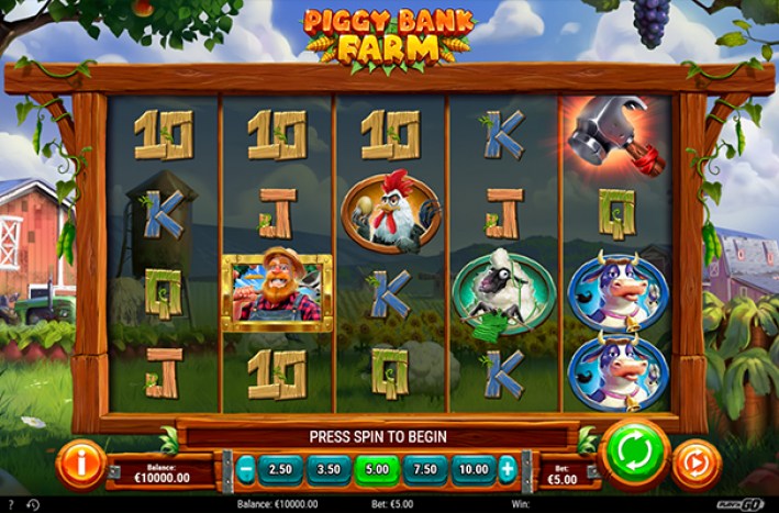 It’s time to put a little money in the bank! This is Piggy Bank Farm, a fun 5x4 video slot where you can help Farmer Joe and reap all the rewards, while the animals do the hard work. The farm comes fully equipped with two bonus features, Piggy Bank Spins and Free Spins. Head on down to the farm and harvest yourself some cash!