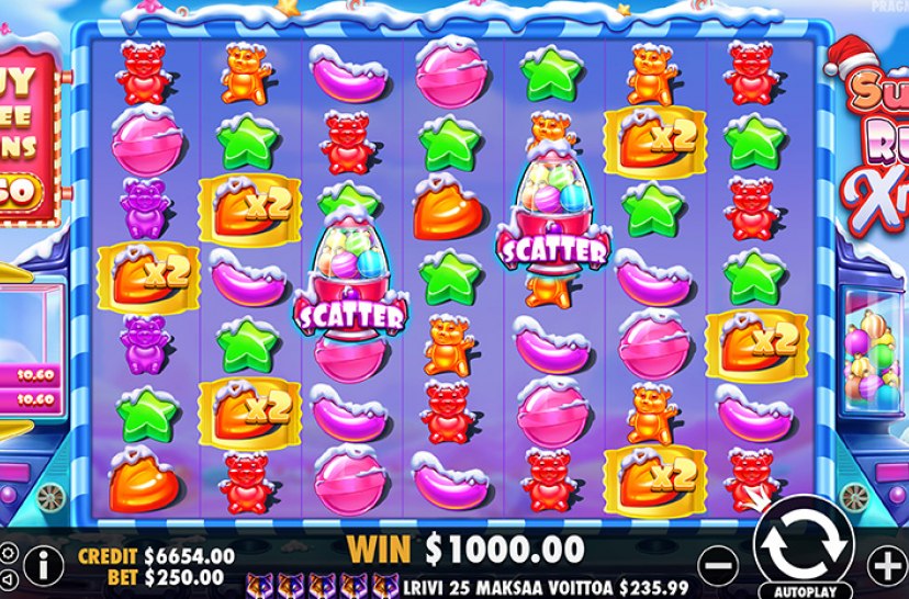Snowy sweets award increasing multipliers in Sugar Rush Xmas. This icy release features various treats, which must form an adjacent cluster of five or more symbols to award a win.