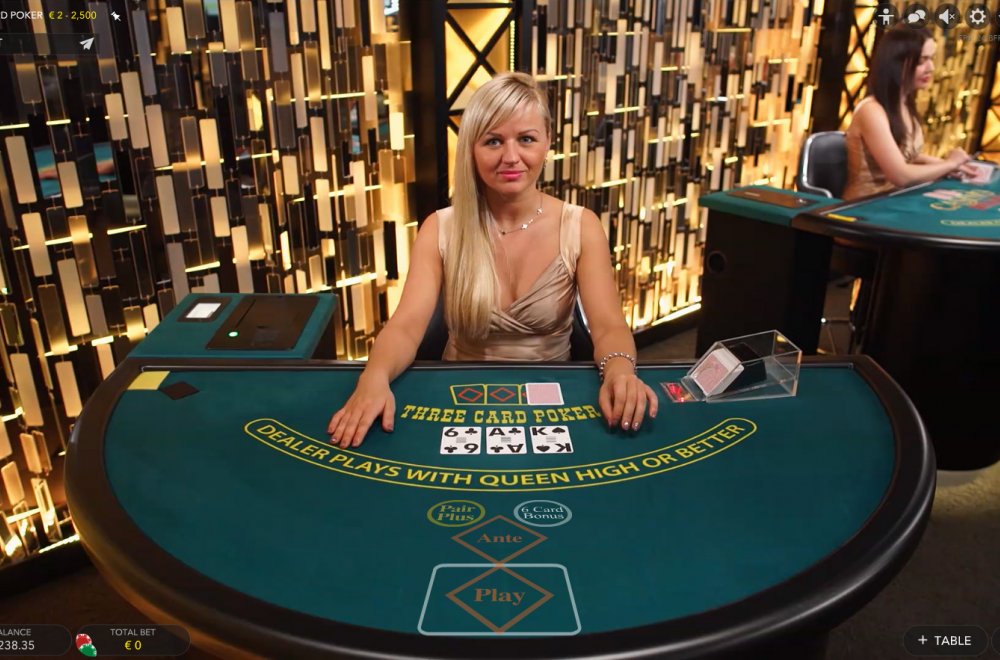 Beat the dealer with a better Three Card Poker hand and win! For even more excitement you can also place extra bets on the "Pair Plus" and "6 Card Bonus" pay tables. The 6 Card Bonus bet gives you the chance to hit a 1,000 to 1 payout from a Royal Flush.